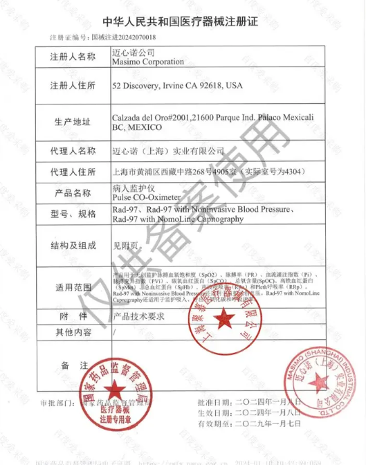 中華人民共和國醫(yī)療器械注冊(cè)證
