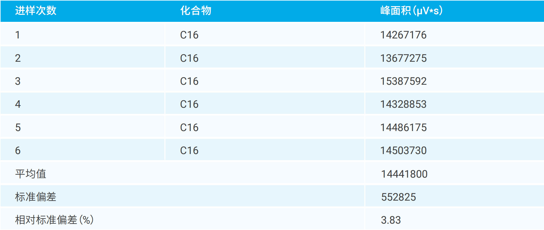表2.200ng C16重復(fù)性(點(diǎn)擊查看大圖)