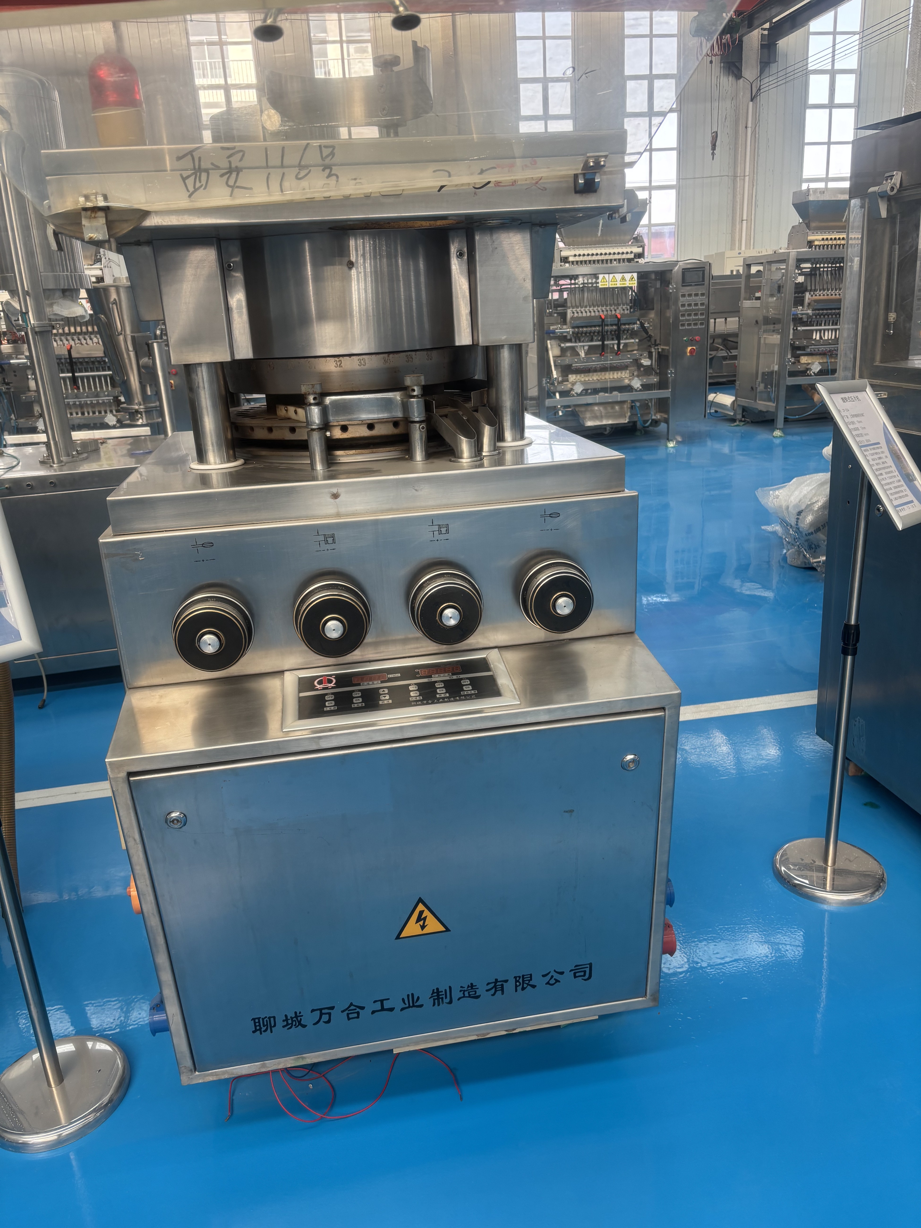 補(bǔ)充說明:旋轉(zhuǎn)壓片機(jī)的核心優(yōu)勢在于“多工位同步作業(yè)”——同一個(gè)轉(zhuǎn)盤上有數(shù)十個(gè)???,每個(gè)??淄瑫r(shí)處于不同工位(有的在填料,有的在預(yù)壓,有的在主壓,有的在出片),因此能實(shí)現(xiàn)連續(xù)批量生產(chǎn)。此外,??椎男螤?、尺寸可更換,只需更換對應(yīng)的沖頭和模圈,就能生產(chǎn)圓形、橢圓形、異形等不同規(guī)格的藥片,適配多樣化需求。