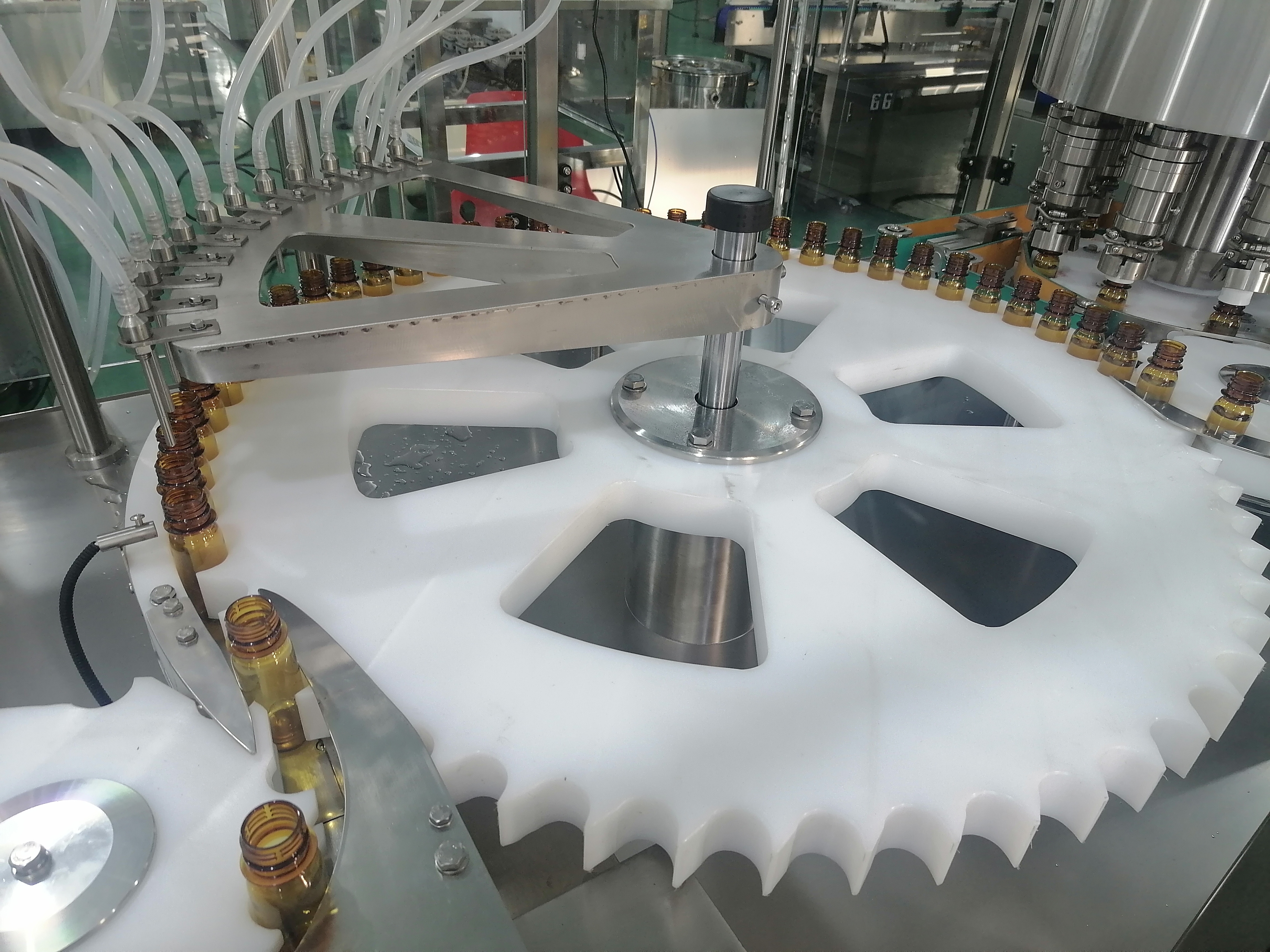 旋蓋系統(tǒng)搭載10頭跟蹤式設(shè)計(jì),可隨瓶身同步動態(tài)作業(yè),無需停機(jī)等待,大幅縮短生產(chǎn)節(jié)拍。旋蓋頭具備自適應(yīng)壓力調(diào)節(jié)功能,能根據(jù)瓶蓋材質(zhì)精準(zhǔn)控制旋緊力度,既保證密封嚴(yán)實(shí),防止藥液溢出、受潮變質(zhì),又避免瓶蓋破損變形,提升產(chǎn)品外觀完整性。整機(jī)采用不銹鋼機(jī)身,耐腐蝕、易清潔,符合GMP生產(chǎn)規(guī)范,日常維護(hù)只需定期更換軟管、清潔機(jī)身,操作便捷且成本可控。